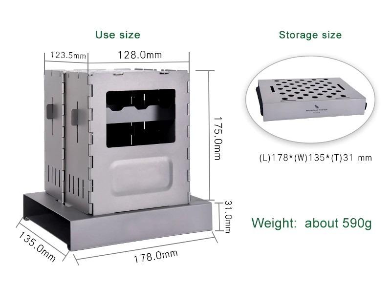 - 內置聚火板可放置酒精爐,穩固防風